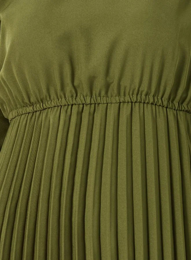 Pleated Olive Dress